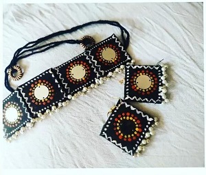 हाताने तयार केलेले दागिने थीम ज्वेलरी लग्नाचे दागिने ब्लाउज पेंटिंग ओढणी/दुपट्टा-साडी पेंटिंग